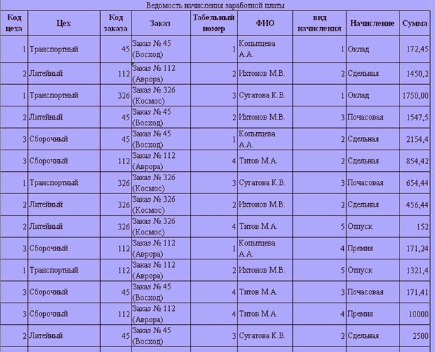 Имеются сведения о денежных суммах, начисленных работникам предприятия с отнесением этих сумм на подразделения предприятия и виды продукции (заказы). Необходимо на основании табелей выполнить группировку начисленной заработной платы АО видам начислений, заказам и цехам предприятия.