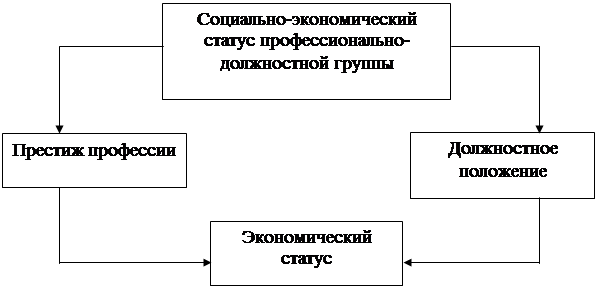 Социально-экономическое положение (статус) – это комплексная характеристика, которая отражает место конкретной группы в общей иерархии профессионально-должностных групп. Это место описывается тремя характеристиками: престижем профессии, служебным положением и экономическим положением группы.