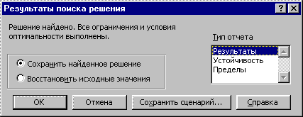 6. Решение задачи выполняется сразу после ввода данных, когда на экране находится диалоговое окно Поиск решения, после нажатия кнопки Выполнить: