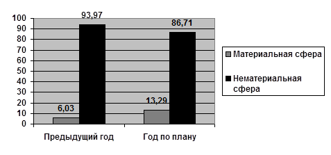 Рис. 1 Удельный вес расходов, направляемых в сферу материального и нематериального производства