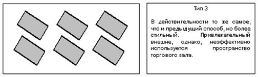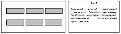Рис 1 Типы расположения торгового оборудования внутри торгового зала