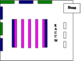 Около касс покупатель проводит время в очереди и ничем не занят. Поэтому зона касс является привлекательной для тех товаров, которые чаще других покупаются под воздействие импульса (жевательные резинки, сладости, напитки и т.д.) Также хорошо располагать в этой зоне газеты и журналы – покупатель может взять их для просмотра и затем купить. На рисунке 3 представлены приоритетные места в торговом зале.