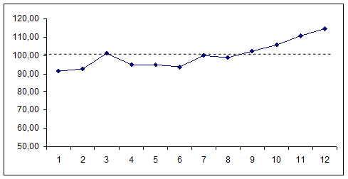 Для наглядного представления сезонной волны индексы сезонности изобразим графически.