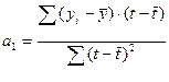Функция выравнивания имеет вид: y = 19,344 – 0,647 · t.