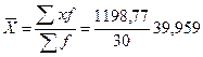 среднегодовой стоимости ОПФ по сгруппированным данным составляет 39,959, а по