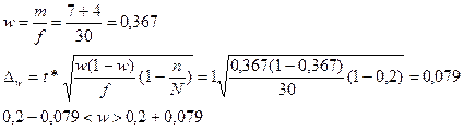 Решая задание 3 выяснили, что: ошибка выборки доли предприятий по среднегодовой стоимости ОПФ 43 млн.руб. и более = 0,079 или 7,9%. С вероятностью 0,683 можно утверждать, что генеральная доля предприятия со среднегодовой стоимостью 43 млн.руб. и более будет находиться в пределах от 12,1% до 27,9%, ошибка выборки средней стоимости ОПФ равна 1,65. С вероятностью 0,683 можно утверждать, что средняя стоимость ОПФ в генеральной совокупности будет находиться в следующих пределах от 38,309 до 41,609 млн.руб.