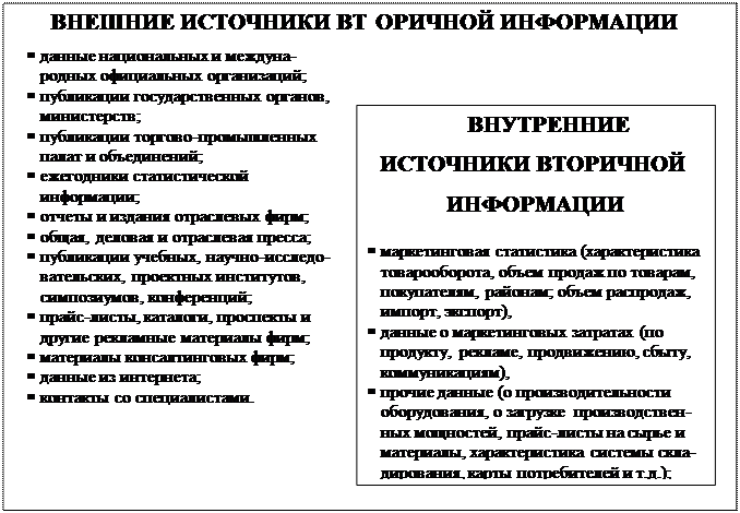 Основные источники маркетинговой информации можно классифицировать следующим образом: