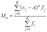 где А – величина, от которой определяется отклонение, a - степень отклонения или порядок момента.