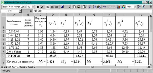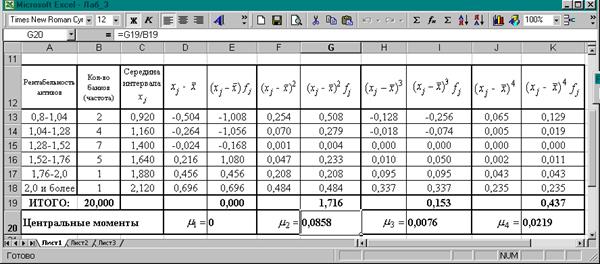 Лабораторная работа № 3. ПОКАЗАТЕЛИ МОМЕНТОВ И ИССЛЕДОВАНИЕ ФОРМ СТАТИСТИЧЕСКОГО РАСПРЕДЕЛЕНИЯ