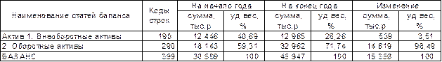 По таблицы 1 видно, что наибольшую часть активов составляют оборотные активы, к тому же их доля возросла на 82% за отчетный год.