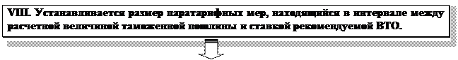 Расчетные величины ставок экономически обоснованных импортных таможенных пошлин, могли бы стать экономической основой для расчета паратарифных мер, размер которых находился бы в интервале между ставкой таможенной пошлины, обеспечивающей эффективную таможенную защиту и «связанной» ставкой пошлины требуемой ВТО. Например: действующая ставка пошлины на говядину свежую или охлажденную – 21,64%, расчетная эффективная ставка импортной пошлины, обеспечивающей защиту отечественного производителя – 46,23 %, «связанная» ставка ВТО – 9%, интервал для установления паратарифных мер (сбор с продовольственных товаров) – более 9 % но менее 46,23%. Размер сбора позволит компенсировать бюджетные потери и в сумме с таможенной пошлиной обеспечит реализацию корректировочной и регулирующей функции импортного таможенного тарифа. Исходя из этого, размер паратарифных мер в частности на продовольственные товары, компенсирующих вступление страны в ВТО возможно рассчитать, применяя предложенную методику, придерживаясь методологических основ формирования таможенных пошлин и этапов их обоснования.