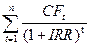 Численное значение внутренней нормы доходности получается путем решения данного уравнения относительно IRR.