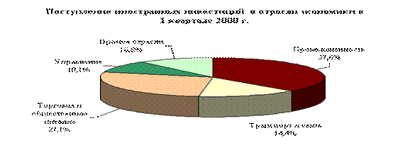 Основная часть вложений из Франции – 1,4 млрд.долл. или 81,6% в январе-сентябре 2003 года пришлась на промышленные отрасли (9 месяцев 2002 г. – 396 млн.долл. или 40,6%), среди которых преобладала топливная промышленность, куда было направлено 1,1 млрд.долл. или 76,5% промышленных инвестиций из Франции (9 месяцев 2002 г. – 140 млн.долл. или 35,4%). При этом, удельный вес Франции в совокупных иностранных инвестициях в промышленность в январе-сентябре 2003 года вырос до 18,8% (9 месяцев 2002 г. – 8%).