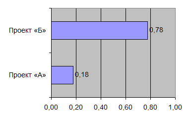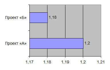 Получили, что индекс рентабельности по проекту "А" выше, чем по проекту "А", что говорит о положительности проекта "Б".