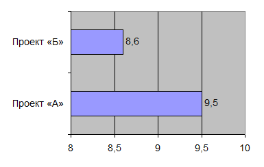 Сопоставляя показатели внутренней ставки доходности, мы видим, что по проекту "А " она более чем вдвое выше, чем по проекту "Б", что свидетельствует о существенных преимуществах проекта "А" при его оценке по этому показателю.