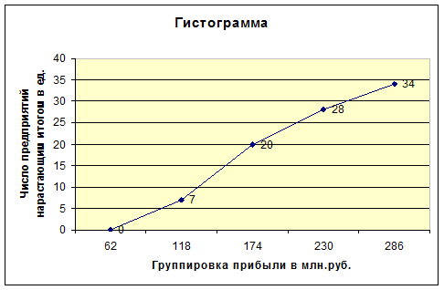 - Построим столбиковую диаграмму и кумуляту (рисунок №5):