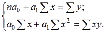 Параметры уравнения прямой а0 и а1 определяются путем решения системы нормальных уравнений, полученных методом наименьших квадратов или по формулам: