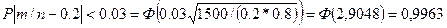 Вероятность события «вложить свои сбережения в коммерческий банк» p=0,2. По формулам интегральной теоремы Лапласа вероятность отклонения доли от вероятности этого события составит: