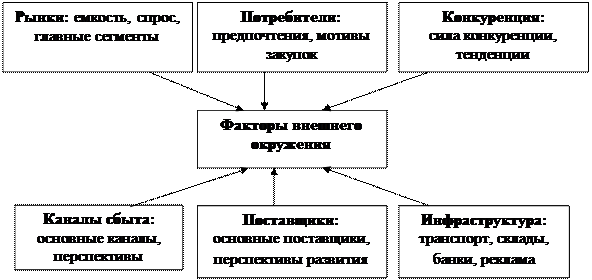 Таким образом, внешняя среда предприятия заключает в себе множество факторов, важнейшими из которых являются международные, национальные, экономические, демографические и рыночные. В число последних входят психология потребителя, новизна конструкций, технологий и конкурентоспособность продукции, а также формы конкуренции и система маркетинга.