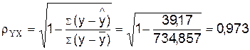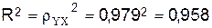 Вариация результата Y (объема выпуска продукции) на 95,8% объясняется вариацией фактора Х (объем капиталовложений).