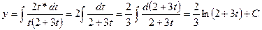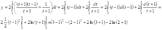 и dx=2t*dt. Если х=4, то t=2, если х=9, то t=3.