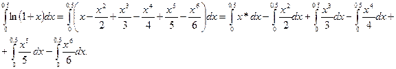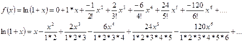 Окончательно получаем разложение функции ln(1+x) так как остальные члены разложения от n и далее n+1 отброшены: