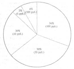 Подавляющая часть наличных денег приходится на банкноты и монеты образца 1997 г. (97,3% и 1,3%), 1,4% наличности составляют старые банкноты и монеты. Структура купюр банкнот в общем количестве банкнот образца 1997 г. следующая: