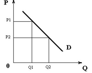 Полученная кривая иллюстрирует закон спроса, который можно сформулировать следующим образом: если цена какого-либо товара повышается (и при этом все другие условия остаются неизменными), то спрос будет предъявляться на меньшее количество этого товара. Та же зависимость может быть сформулирована иначе: если на рынок поступает большее количество какого-либо товара, то, при прочих равных условиях, он может быть реализован по менее высокой цене.