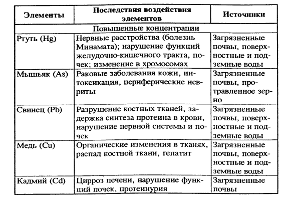 Последствия воздействия некоторых тяжелых металлов на здоровье человека
