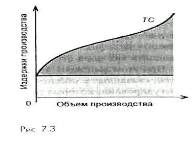 Зависимость изменения пе­ременных издержек в ответ на из­менение объема выпуска изобра­жена на рис. 2.