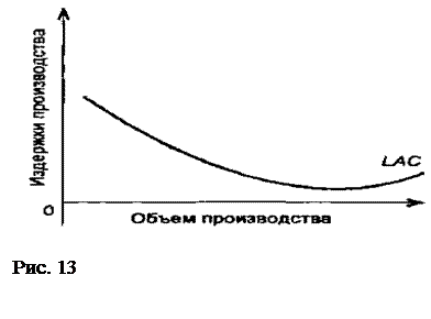 Кривая средних постоянных издержек падает по мере увеличе­ния количества производимой продукции. Такое поведение средних постоянных издержек, естественно, отражается на средних общих издержках производства. Иначе говоря, если средние постоянные из­держки непрерывно падают по мере увеличения количества произво­димой продукции, то превышение средних общих издержек над сред­ними переменными издержками также непрерывно сокращается. Кри­вая средних общих издержек в результате является более убывающей и менее возрастающей или, другими словами, имеет большее отрица­тельное значение углового коэффициента и меньшее его положитель­ное значение, чем кривая средних переменных издержек производст­ва (рис.11).