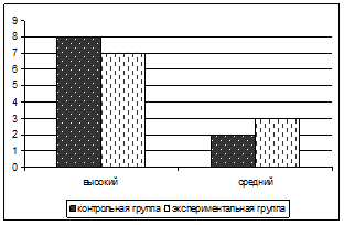 Как мы можем увидеть из представленной таблицы, уровень детей экспериментальной группы значительно повысился: