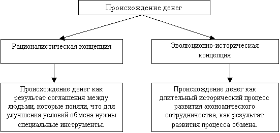 По вопросу о происхождении денег существует две концепции: рационалистическая и эволюционная.