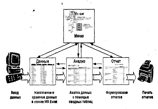 • обобщение и анализ данных выполняются с использованием сводных таблиц-лист "Анализ";