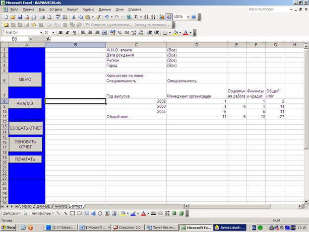 • подготовка, форматирование и печать отчетных документов - лист "Отчет";
