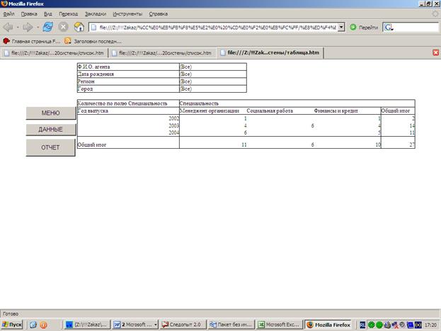 Рис. 3. Отчет о выпускниках специальности «Социальная работа»