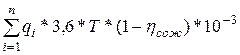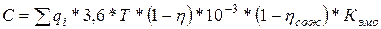 - годовой выброс Сi = В*qi*10-6, т/год;