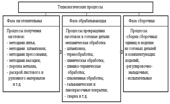 В машиностроении и приборостроении технологические процессы в основном делятся на три фазы: