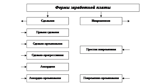 Производной от повременной является сдельная или поштучная заработная плата. Прямая сдельная система определяет заработок рабочего величиной выполненной работы (количеством выпущенной продукции) и сдельными расценками за единицу работы (продукции). При сдельно-премиальной системе, к заработку по прямым сдельным расценкам добавляется премия за выполнение и перевыполнение количественных и качественных показателей. Сдельно-прогрессивная система предполагает применение обычных расценок при выполнении работ в пределах установленной нормы и прогрессивно возрастающих расценок при достижении возрастающих уровней перевыполнения норм. При аккордной системе размер заработка определяется заранее за весь объем работ с оговоренными сроками их выполнения. Аккордно-премиальная система предусматривает выплату премий за качественные показатели работы в дополнение к оплате по аккордному подряду. Аккордная и аккордно-премиальная системы заработной платы получили широкое распространение в строительстве, сельском хозяйстве, ремонтных работах. Рассмотренные формы организации заработной платы представлены на рис. 2.