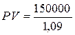 NPV = PV – IC = 900,9 -150000 = - 149047,62 рублей, т.е. величина чистых дисконтированных доходов меньше величины издержек на 149047,62 рублей, т.е. проект не следует принимать.