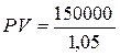 NPV = PV – IC = 917,43-150000 = - 13761,47 рублей, т.е. величина чистых дисконтированных доходов меньше величины издержек на 13761,47 рублей, т.е. проект не следует принимать.
