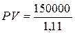 NPV = PV – IC = 135135,14 - 150000 = - 14864,86 рублей, т.е. величина чистых дисконтированных доходов меньше величины издержек на 14864,86 рублей, т.е. проект не следует принимать.