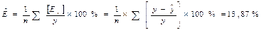 В среднем расчетные значения ý для линейной модели отличаются от фактических значений на 13,87%.