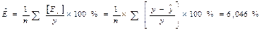 В среднем расчетные значения ý для линейной модели отличаются от фактических значений на 6,046%.