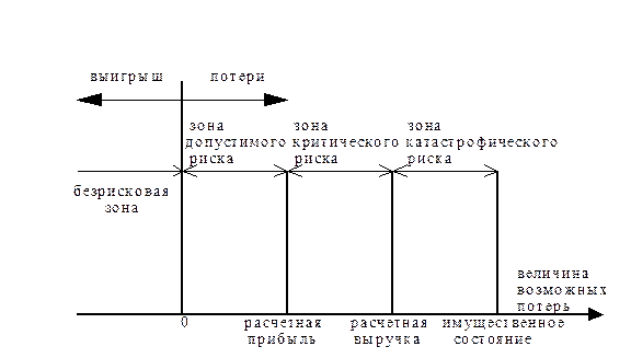 Рассмотрим некоторые из главных показателей риска. С этой целью сначала выделим определенные области или зоны риска в зависимости от величины потерь (рис. 1).