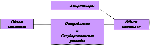 Складывалась ситуация, когда за год потребляется больше капитала, чем производится. В этих условиях, чистые инвестиции имеют знак минус, а в экономике происходит деинвестирование, т.е. сокращение инвестиций. В США имелось больше производственных мощностей, чем она использовала в текущем производстве. В результате стимулы к замещению изношенного капитала, а тем более к созданию дополнительного капиталабыли очень малы, либо вовсе отсутствовали. Амортизация превышала валовые инвестиции и к концу года объем капитала становился меньше, чем он был в начале года. В 1933 г. валовые составляли всего 1,6 млрд. долларов, в то время, как капитал, потребленный в течении года- 7,6 млрд. дол. Таким образом чистое сокращение инвестиций, т.е. деинвестирование, составило 6 млрд. дол. На рис.2 показан этот случай.