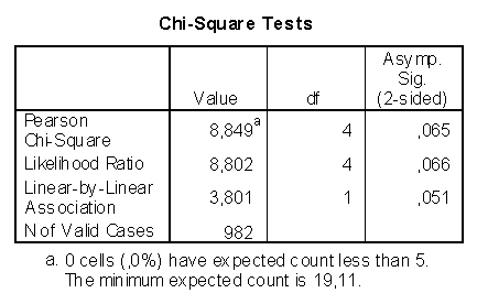 Примененные статистические критерии показывают, выполняется ли нулевая гипотеза, утверждающая, что между переменными в генеральной совокупности нет никакой зависимости. Важным показателем является ассимптотический уровень значимости (Asymp.Sig 2-sided в таблице на рис. 2.11) - обычно нулевая гипотеза отвергается, если уровень значимости меньше 5% (0,05).