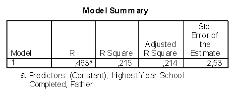 Полученная модель может быть использована для предсказания уровня образования респондентов при изменении уровня образования их родителей (в приведенном примере - отцов).