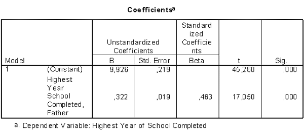 Например, исследователь хочет предсказать, как будет изменяться уровень образования у респондентов при повышении уровня образования их родителей (предположим, предпринимателя интересует прогноз сбыта товаров для высокообразованных интеллектуалов).
