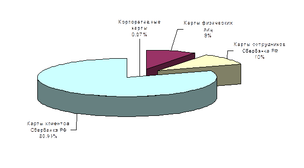 В настоящее время физические лица активнее стали получать «личные». Большую часть среди выданных карт занимают «Зарплатные» для клиентов. Наибольшая доля в общем числе действующих карт приходится на пластиковые карты, открытые клиентами Сбербанка для перечисления заработной платы. Это объясняется ростом открытых счетов, потому что в настоящее время безналичное перечисление заработной платы и других видов доходов на счета пластиковых карт становится самым популярным и удобным способом.